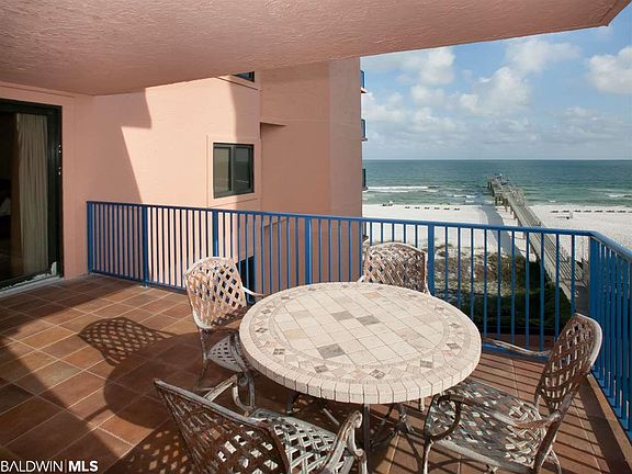 Enjoy the Gulf Coasts' Only Private Gulf-Front Fishing Pier Extending Out Over the Emerald Waters of The Gulf of Mexico. West Corner Three Bedroom Three Bathroom Spacious Split Floorplan. Direct Gulf Front Condo. This Beautifully Furnished Unit Features Travertine Tile Flooring Throughout, Track Lighting, Crown Molding, Recessed Lighting, Granite Countertops, All Stainless Steel Appliances, Updated Cabinetry and Fixtures, Indoor Plantation Shutters, Wet Bar with Sink and Ice Maker. Master Suite Offers Private Access to Gulf Front Balcony with Breathtaking Views, Luxurious Spa Like Master Bathroom Features Dual Vanity with His and Her Sinks, Garden Tub, Separate Custom Tiled Stand Up Shower and Sky Lights For Ample Natural Lighting. Four Seasons Is One of The Most Unique Properties Along the Gulf of Mexico. Having the Only Gulf Pier on The Alabama Gulf Coast. The Complex Features a 702' Private Pier, Guarded Gate, Indoor/Outdoor Pools, Meeting Room with Kitchen, Fitness Room and Sauna. Prime Location. Just Minutes To Shopping, Restaurant, Beaches and More. Don't Miss Out On Your Opportunity To Own A Piece Of Paradise.
