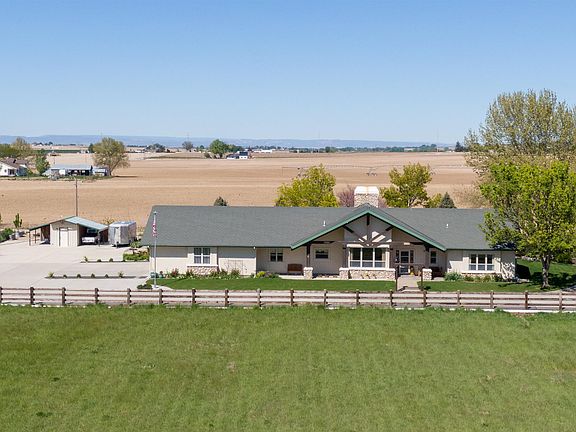 THIS IS A LIVE AUCTION. Home to be sold at live auction June 26, 2024 at 10am. Live your Idaho dream on this stunning 11.51 acre property. The property features 4 acres of fenced pasture with room for a roping/riding arena, and approximately 5 acres of alfalfa to feed your animals. A custom ranch style home with timbered beam ceilings, a river rock fireplace, and extensive hardwood - This home is full of rustic charm! The home boasts 4 bedrooms, 3.5 bathrooms and 4652 sq ft. It has been meticulously maintained by the current owners. Outside there is a 4-bay fully insulated 3 phase power shop, and a large custom barn with 4 horse stalls with automatic waters. Come live your country dream on this quiet and serene property! 5% Buyer's Premium, 5% Earnest Money, non refundable. 30 days to close, sold as is. Seller to pay 1/2 of closing doc fees and obtain standard title insurance.