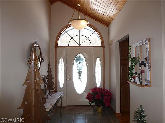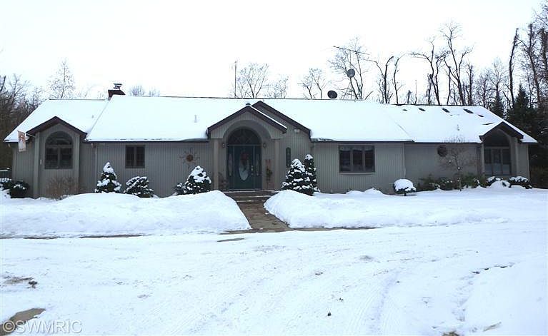 Executive Ranch in Sherman Township in a secluded setting on 4 acres. This home features many updates, 3852 SF of living space on two levels, 4 & 4 FL/baths. Inside you will find large living spaces with many large windows for all that natural light. Through the front door into the vaulted ceiling foyer open to great room with pine plank vaulted ceilings & tile fireplace. The large kitchen features quartz counter tops, oak cabinets, ceramic back splash, 2 pantries, large center island, desk area and wood floors that flow to the open dining area with a slider to the deck. The huge master suite features his and her's walk-in closets, sitting area, vaulted ceilings and large windows. You will also find an additional family room, complete office area & a great mudroom on the main floor. The lower level walk out features a large rec room w/wet bar, 3 BRS and 2 F/baths. Out side is a 26x64 G/Pole barn, L/maintenance free deck area, circle dr. with plenty of parking, patio w/hot tub, wooded.