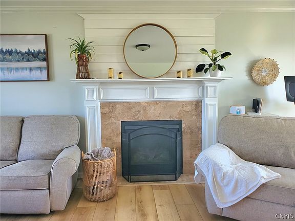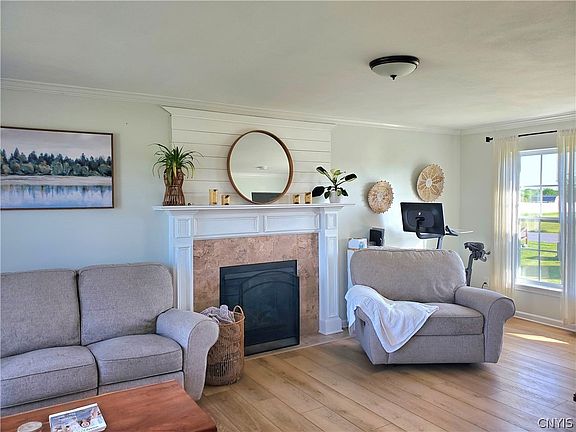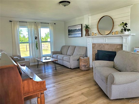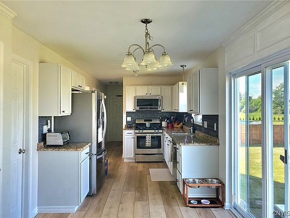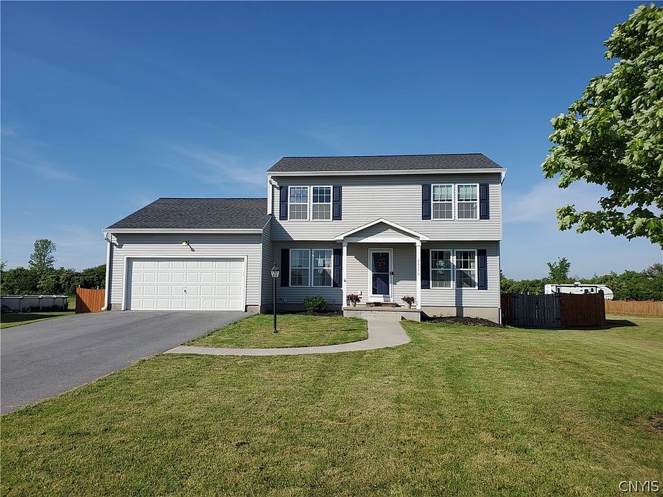 Turn-key 4 bedroom/2.5 bath colonial with prime location close to I-81, Watertown, and only 10 minutes to Fort Drum! This beautifully maintained home is on a dead-end neighborhood street and features Central Air, upgraded kitchen including SS appliances (new refrigerator, dishwasher, microwave), granite countertops, and pantry. A sliding door by the eat-in kitchen leads out to the large fully fenced back yard (playset and chicken coop both convey). The open and inviting living room is perfectly situated off the kitchen, and is centered around a gas fireplace. Easy-to-maintain luxury vinyl plank was recently installed throughout the home, giving the space an even brighter feel. An abundance of natural light flows through the windows, which provide perfect views of sunrise and sunset to start and end your day. Master bedroom includes a walk in closet with upgraded California Closet storage, and a master bathroom featuring a double sink with granite counter tops, and a large walk-in shower. Full, partially finished basement adds additional living space, with the option to add even more if you desire! Call before it's gone!