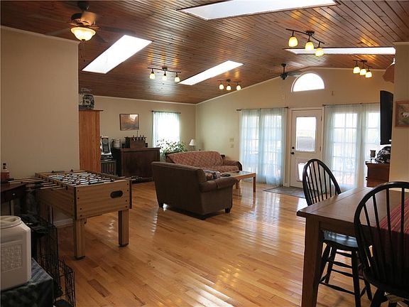 An amazing one level - 3 bedroom, 3 bathroom ranch home with in-ground pool & pool house! Updated home features a gorgeous custom kitchen with solid surface counter-tops, tile backsplash, pantry, & stainless appliances. There is a spacious living room + a great room with vaulted wood ceilings; absolutely gorgeous! Wood floors and tilt-in windows throughout. PLUS there is a detached 2 car garage and a 40x60 outbuilding with electric and concrete! BLACKTOP LOCATION TOO! LOOK NOW!