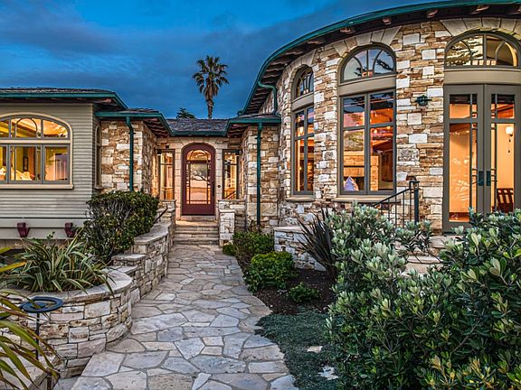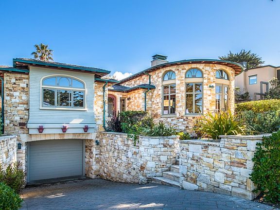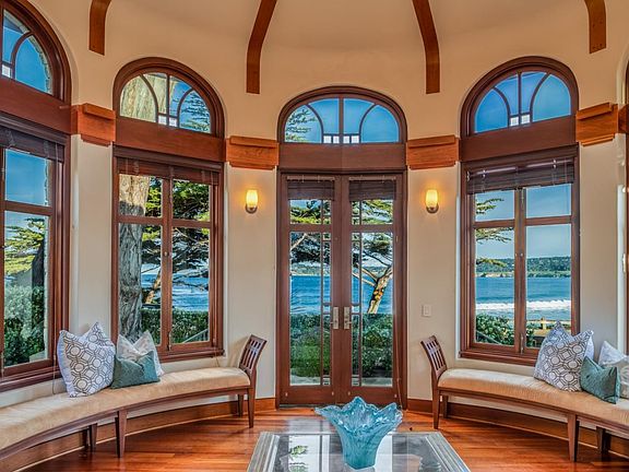 Offering an incredible combination of style, quality, and views, this Eric Miller designed residence was built in 2000 and is approximately 3,389 square feet on an oversized 6,000 sq. ft. lot on Carmel Point. The home consists of four bedrooms, three full baths, large open rooms, a master bedroom on the main level with sitting room/den, three spacious guest bedrooms, an office area, custom touches throughout with high ceilings, and an abundance of light. A stone exterior and private rear patio with an outdoor fireplace create an ideal setting to gather with friends, and the fire pit on the front patio is designed to maximize views down Carmel Beach to the Pebble Beach Golf Links- all just a few steps to the white sand.