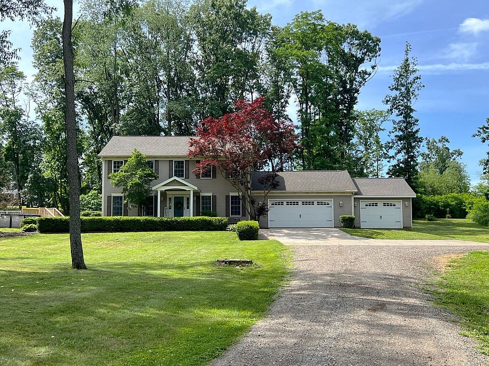 Charming home on 1.9 acres with privacy. Friendly country neighborhood only minutes from town this two-story features 4 bedrooms, 2 1/2 baths 2964 SF and attached 3 car garage. New kitchen with upgraded appliances, ample cabinet space, quartz counters and pantry. Large family room with natural light, perfect for relaxation and entertaining. Spacious dining room for holiday dinners. Main level office/den, nice sized living room, half bath, open stairway to the second floor and covered front entrance. The primary suite has a private bathroom. Large patio and above ground pool (2020) offers endless opportunities for outdoor activities and enjoyment. Additional features include a full basement with recreation room, newer roof, newer well and a 1 year old furnace. Beautiful home & property!