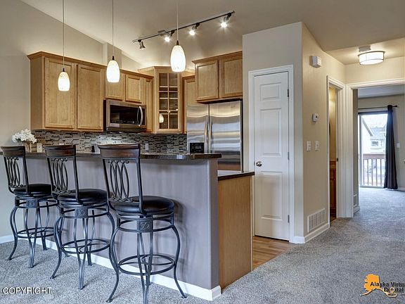 Original owners have IMPECCABLY maintained this home, all you need to do is bring your toothbrush! Brand new carpet, immaculate paint. Kitchen w/ SS appliances, solid-surface tops & breakfast bar. LR w/ gas FP & vaulted ceiling. Owners' suite w/ 2 closets, & private BA w/ double vanity, jetted tub, & separate shower. Fabulous UMED location w/ easy access to JBER, schools, shopping, parks & trails!