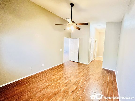 This split floor plan, 3 bed / 2 bath home is open and airy with vaulted ceilings, attached 2-car garage, covered patio, and no carpet! There's a green belt behind the home for privacy too. Situated on a private road in the highly coveted Southern Springs gated community overlooking South Mountain, this home is close to everything yet seemingly away from it all. Better locations return better living experiences, and this home features the best of AZ living with parks, trails, schools, and shopping, and the allure of a remote countryside community complete with gorgeous up-kept homes, private gardens & springs, and walkable streets, and top-rated parks and trails nearby. Minutes to downtown, plenty of nearby shopping, and easy access to major highways. The Kroc Center indoor/outdoor recreational facility with rock climbing, an indoor pool, and more is just minutes away. The owners are looking for income of at least 3x's monthly rent, a reasonable credit profile for all adults (600+) and clean rental history. Rent is $1,949/mo + county tax/processing if applicable. Security Deposit $1,949, NR $199 lease admin fee, $60 NR application fee per person (18+ must apply). Small dog OK with $40/mo pet rent, all pets must be approved. Washer dryer hookups. The home will be professionally managed. Showings by appointment with Michael Hadley from Renters Warehouse.