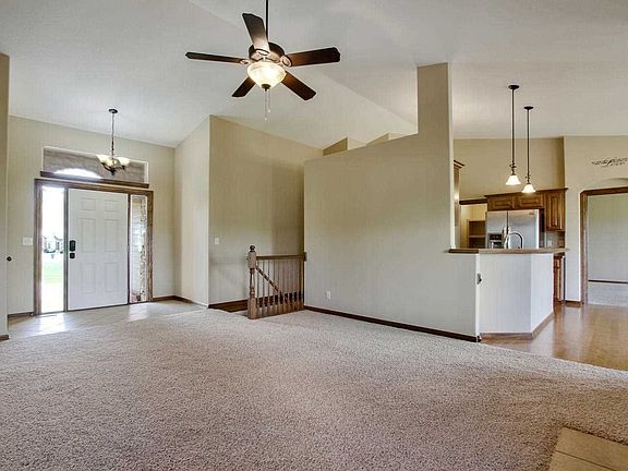 Nothing to do but enjoy. This ranch home was a former model and still shows like new. Very clean and well cared for and properly maintained. HOA dues are $30 monthly. The kitchen is light and bright, boasts loads of horizontal workspace, large walk-in pantry and fully applianced kitchen, undercounter lighting and yes, the refrigerator remains with the property. Hardwood floors in the kitchen and the dining area. You'll appreciate the convenience of the main floor laundry. This home has a split bedroom plan. The master bedroom is spacious and the master bath has a soaker tub and separate shower. If you enjoy entertaining family and friends the lower level family room is something you will definitely value --- nicely finished great room with a large wet bar and enough room to accommodate a full-size refrigerator, lots of cabinetry for glasses and dishes. Enough floor space for a pool table, large sectional sofa and television viewing. Just down the hall, two bedrooms and the third bath. All have stained concrete. Ample storage space in the mechanical room. The covered deck is where you can kick back and relax watching a game of badminton or the kids play. A doggy play area with K-9 grass and a 10 year transferable warranty, like nothing you've ever seen. Call today for more details and to set an appointment.