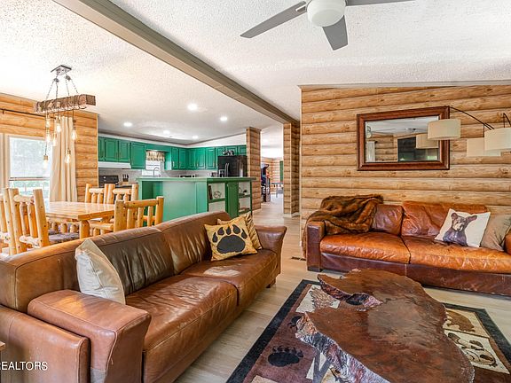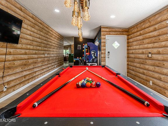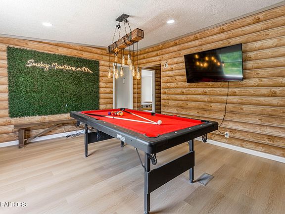 enjoy company or could be a perfect place for a recreational entertainment and gaming. As you continue through the home the space is illuminated with natural lighting along with vaulted ceilings as you enter the warm and cozy Great Room, anchored by a beautiful, stacked stone wood burning fireplace. The large L-Shaped kitchen with kitchen island offers plenty of cabinets and working space to prep meals and stay organized as you enjoy dinners with family and friends around the dining room table. The expansive front deck provides the perfect opportunity to take in Mountain Views in your own privacy or add a hot tub and take in the views as you simply relax. The level lot also makes it easy for parking and for navigating in and out of the property. This amazing property is also conveniently located to Dollywood, Pigeon Forge, Gatlinburg, and the Great Smoky Mountain National Park, and is currently on an overnight rental program.