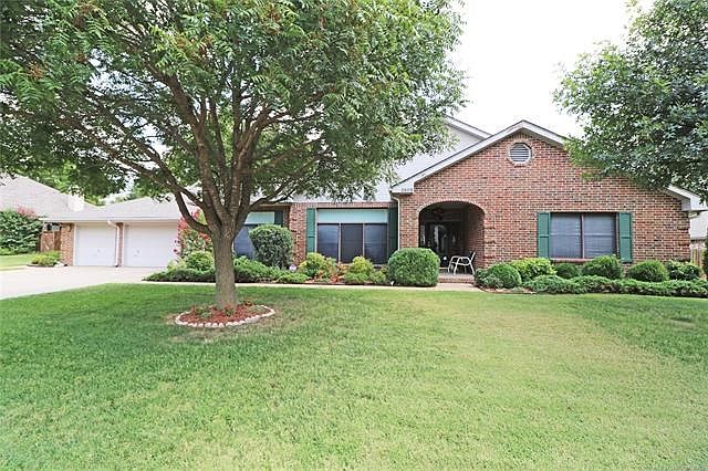 Spacious one level home w/split bdrm plan. 4 bdrms, 3 ba, sunroom, breakfast nook. Frml living & dining. Tons of storage. His/Hers walk-in closets in master. Covered Patio. WORKSHOP & STORM SHELTER. No wallpaper, fresh paint & new master & hall floor tile