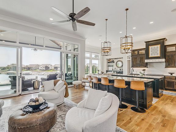 This home epitomizes luxury and sophistication, offering breathtaking Emerald Bay lake views and impeccable architectural details. The spacious layout features 12-foot ceilings and floor-to-ceiling windows, providing unparalleled lakeside vistas. Glass slider doors lead to the covered deck, equipped with heated floors, automatic retractable shade, and a gas fireplace for year-round enjoyment. The recently renovated kitchen is a chef's delight, boasting double islands, quartz and granite countertops, a Wolf cooktop, double oven, Sonic ice maker, and beverage fridge. The formal dining area showcases stunning lake views and a built-in buffet with wine and glass storage. The master suite is a private retreat with an oversized tiled shower, his and her vanities, and a walk-in closet connected to the laundry room. In this split-bedroom design, the 2nd and 3rd bedrooms share a spacious bathroom with a Jacuzzi tub and shower. The full walkout basement offers a large family room with an electric fireplace, a wet bar with custom built-ins, and direct access to the impressive backyard oasis. Additionally, a theater room, half bath, and two extra bedrooms with a jack-and-jill bathroom complete the lower level. Outside, the dreamy backyard features a Gunite pool with a waterfall, surrounded by travertine tile. The covered patio includes a granite bar and an outdoor kitchen with a gas grill, perfect for entertaining. Stone steps lead down to the beach, where an oversized powder-coated dock with a lift and Jet ski pad awaits. Conveniently located across from the neighborhood basketball court and near the clubhouse, pickleball courts, and sand volleyball, this prime lot offers the ultimate luxury living experience. All furnishing are negotiable.