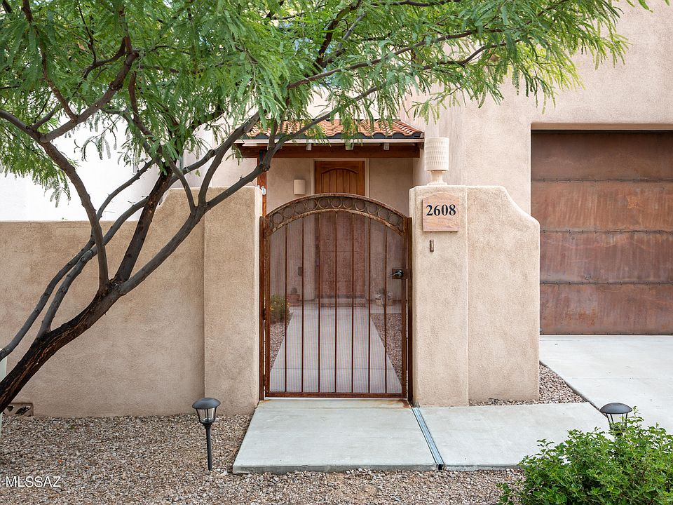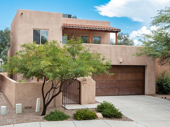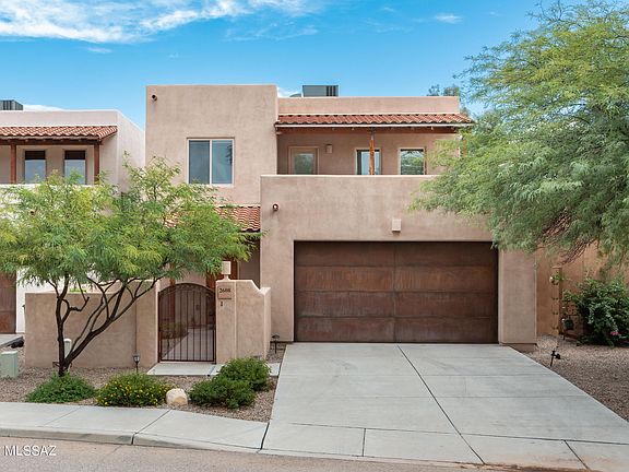 WOW! This is your chance to own in a unique private community of beautifulsouthwest style homes with a fantastic location in central Tucson. Upon arrival you will enter thecharming courtyard that will lead you to the interior of your home which has an elegant open concept.The downstairs displays high wood beamed ceilings, large spacious kitchen, laundry area, powder room,and the Primary suite. The kitchen features granite counter tops, upgraded cabinets, stainless steelappliances, and large island making it an easy area to entertain. From here you can enjoy the great roomwhich has additional space for formal dining. Off the kitchen and down the hall is the private Primary suite. This wing has it all. The main room is expansive boasting two walk in closets and a private door that lead to additional fabulous outdoor living space. The bathroom gives you more with dual vanities, walk in shower, large soaking tub, and additional storage. Upstairs offers you a loft area with two expansive guest suites. Each room has their own walk-in closets and share a spacious bathroom. In addition, upstairs wows you with your own private balcony displaying beautiful Tucson views to take in those dazzling sunrises or sunsets. All this and close to amenities such as the River Walk, Tucson Medical