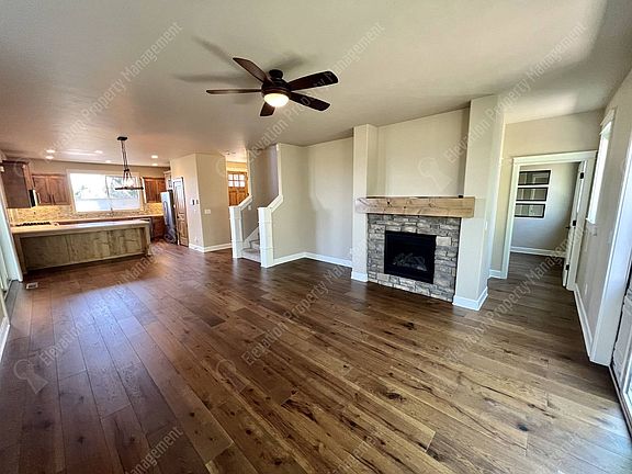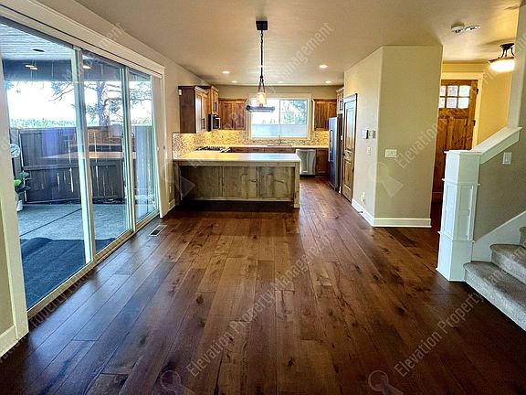 Welcome to this tranquil neighborhood, nestled among the River's Edge golf course on Awbrey Butte in NW Bend. With beautiful views, a fantastic kitchen and large covered patio, this property has it all! The home features an open floorplan, oversized windows letting in lots of light, four large BRs plus and office/den and nearly 2,300 sf on two levels. The kitchen has tons of quartz countertop space, a pantry, and stainless appliances including a five burner gas range. The dining room can accommodate a huge table, perfect for entertaining friends and family at the holidays. The living room is centered around a cozy gas fireplace and the entire main level is tied together with beautiful engineered hardwood floors. There is also an office or den around the corner from the living room. Upstairs, the primary BR is huge and offers a coffered ceiling, double windows and a large en suite bath with a walk-in shower and an enormous walk-in custom closet. The other BRs are also generously sized and all have great views of the southern and eastern Oregon mountains. There is a second full bath and laundry room with W/D included! Relax in the evenings on one of two secluded patios or take a walk along the Deschutes River Trail, just a little ways down the Butte. This home has quick and easy access to Hwy 97 and is just a short hop to downtown Bend or a 25 minute walk. This home won't last long. Email to apply today!