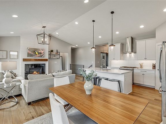 This beautiful, meticulously-cared-for ranch has everything you've been looking for in Grimes' highly desired Brooke Ridge West! You're welcomed to an open concept modern floor plan with a vaulted ceiling, engineered hardwood floors & oversized windows. The great room features a floor-to-ceiling shiplap fireplace & overlooks thebeautiful backyard with wrought iron fence. The kitchen boasts a large shiplap island, quartz counters, tile backsplash, stainless appliances w/ gas range/hood vent & pantry. The dining area off the kitchen has sliders to the maintenance-free covered compositedeck with aluminum Westbury rail. The private primary en-suite has a tray ceiling, dual vanity, large tile shower & walk-in closet connected to laundry & mudroom. 2 additional bedrooms & full bath sit at the front of the home. Afinished lower level includes 9' ceilings, a huge family/rec room with wet bar, 4th bedroom, full bath & large storage room with epoxy floor. Enjoy upgradesof irrigation, full radon mitigation system, humidifier on the furnace & more!
