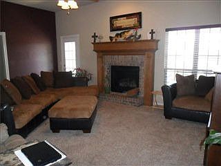 Great home in coveted gated community. Beautiful castled cabinets, granite counters, tiled island, built-in desk and walk-in pantry in kitchen. Large master bed. Master bath has jetted tub, separate shower, large walk-in closet. Large living with beautiful fireplace. Lots of Storage. Swing in garage. Water softener. Big pretty covered back patio over huge expanse of back yard.