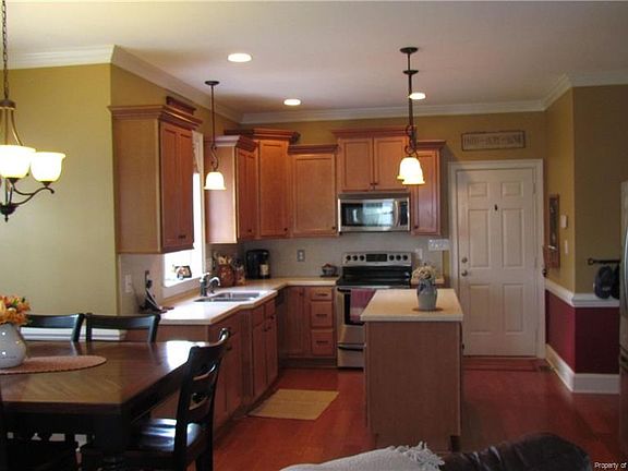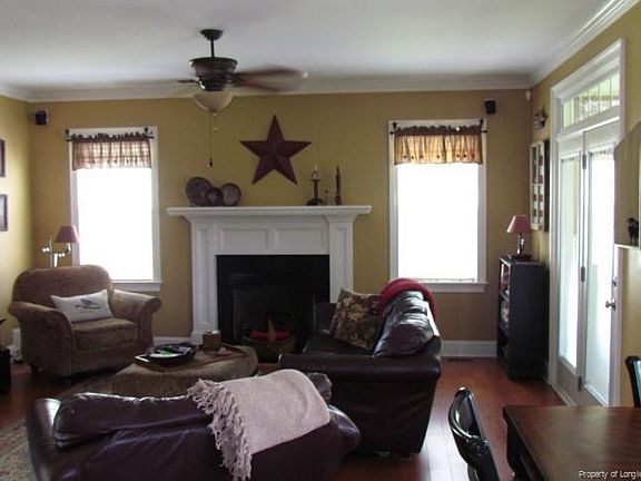 Two story white colonial with black trim. Large master and 3 other bedrooms, with Large bonus room serving as one of the three. 3 full baths. Guest bathroom downstairs. Kitchen with corian counters and island. Gas stove and all stainless steel appliances. Fixtures are upgraded. Upgrades throughout, with chair rails and trey ceilings. Family room is wired for sound and there is a security system built in.New Pergo flooring throughout downstairs. Butlers pantry and separate pantry. Large dining room and family room. Open concept family room with eat in nook and kitchen. Raised and screened porch. Double oversized garage with extra space and extensive storage shelving. Large custom shed with loft for storage. Large custom fire pit with surrounding patio. Many mature trees and landscaping. Neighborhood Description This is a quiet neighborhood in the Jack Britt and Stoney Point school district. There is a HOA that is active in keeping the neighborhood attractive and safe.