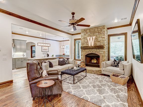 A quiet, luxurious getaway is awaiting you in Edmond. This pristine and immaculate home in the quiet Iron Horse Ranch community comes move-in ready and invites you with custom features. Step inside the airy floor plan and be greeted warmly by the stone fireplace sitting between two grand windows that reveal a leafy green backyard. Flow into the gorgeous kitchen with a wine rack and expansive island finished with a farmhouse sink. Corral the family around the oversized built-in breakfast nook or enjoy a quiet cup of coffee on one of two covered patios that showcase the natural beauty of this hillside property. Vaulted ceilings and wooden beams throughout, this home's charm extends into the large bedrooms and the serene ensuite master bathroom with a spa tub and double vanities. The gated neighborhood offers trails, parks and a lodge style clubhouse. With easy access to I-35 and Edmond Schools, you can enjoy easy living with close proximity to the city! 2020-02-13
