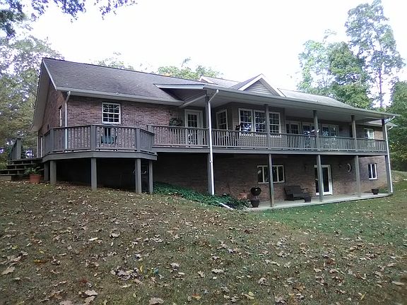 SUPER LOCATION! Well built brick custom home just 2 miles from town. Low maintenance. Open concept floor plan great room, kit, Dr, L With back and front covered porches Walk out basement Have an 32 x40 detached garage with 12 x40 lean to on each side also efficiency apt . Could b used for rental or workshop Has a hardy wood furnace optional or gas. There is 4,000 plus sqft. Under roof. Lots of possibilities