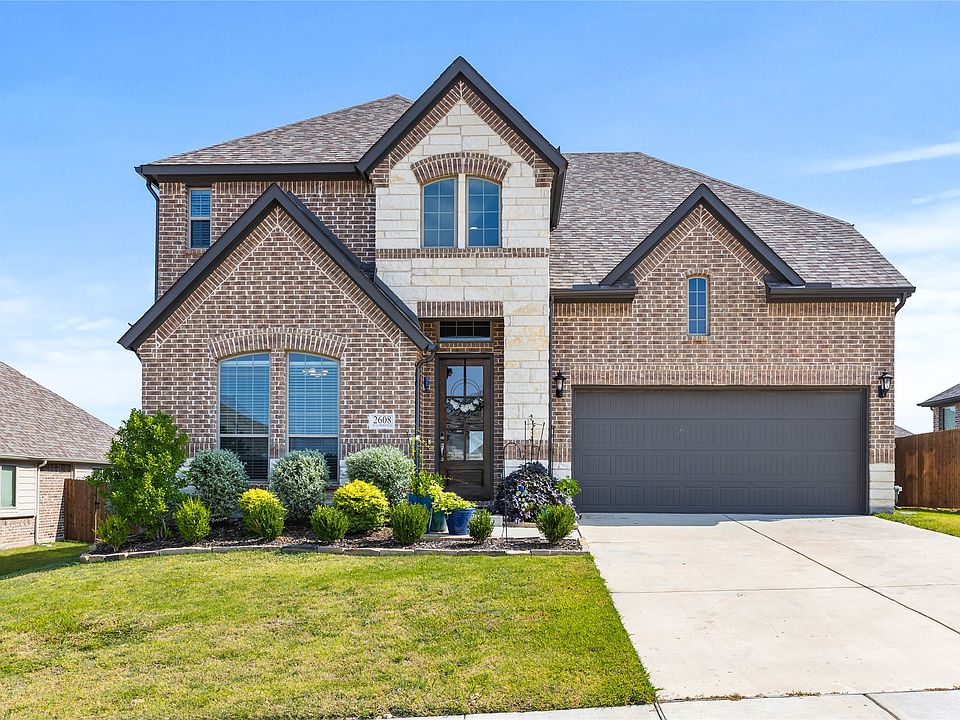 NO HOA, NO PIDS or PUDS. This home is just three years young. Sellers are being relocated for a job promotion. Built by Stonehollow Homes in 2022 with quality and purpose in mind. Nestled in Parkhaven Estates, this charming brick and stone home blends modern conveniences with traditional elegance. As you step through the gorgeous front door you will appreciate the wood look ceramic tile floor leading you beyond the office and formal dining room into an inviting open concept kitchen and living area. Plenty of windows adorn the space, allowing abundant natural light to flood in. The primary suite, with its own en-suite bath, offers a peaceful escape. You will seamlessly transition from the kitchen, where culinary delights can be prepared and enjoyed by friends and family. Gather everyone around the large island with its upgraded granite countertops and bullnose edging. The kitchen also boasts of energy efficient appliances. Now move into the warm and welcoming family room. Enjoy fireside chats in the fall and winter months near the stone fireplace. There are a total of four spacious bedrooms, each designed to provide a serene retreat.   An office downstairs, a game room and media room upstairs complete the checklist for a perfect layout. It’s an easy 8 min commute to Texas Instruments. Easy access to highways 75 and 82. Walking distance to Herman Baker Park which offers plenty of outdoor activities. Other outdoor highlights nearby are Eisenhower State Park and Lake Texoma. Seller will provide a 1 year American Home Shield Essential Policy warranty.
