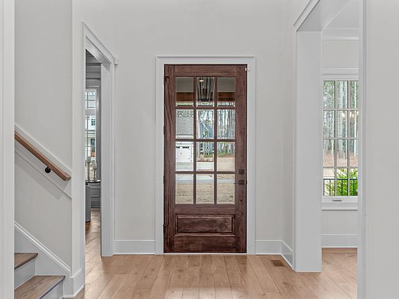 Thoughtful design meets luxury finishes built in just 2022. Offering the feel of new construction without the wait, it's move-in ready and perfect for today's lifestyle. At the heart of the home is the open kitchen, featuring quartz countertops, custom cabinets, large island with breakfast bar, stainless appliances, tile backsplash, and an oversized walk-in pantry. Secondary pantry space complete with a second refrigerator! The kitchen flows seamlessly into the living room, where a tray ceiling, gas fireplace with custom built-ins, and sliding glass doors lead to a screened-in porch with its own fireplace—ideal for cozy evenings or entertaining. The first-floor primary suite complete with a private foyer entry, tray ceiling, triple windows overlooking the treelined backyard and private door to the screened-in porch. Spacious primary bath with dual quartz vanities, large soaking tub, tiled shower, and a spacious walk-in closet. Enjoy a formal dining room and a bright breakfast room, plus a first-floor office with a full bath that could also serve as a fifth bedroom. Upstairs, three additional bedrooms, an oversized bonus room, and walk-in attic storage. The fourth bedroom offers a flexible attached space—perfect for a home gym, playroom, or private office. This home features a 3-car garage and sits on a serene 0.7-acre lot backing to wooded space, providing privacy and tranquility. Located just 15 minutes from Downtown Raleigh and minutes from Cary, this home offers the perfect balance of convenience and seclusion.