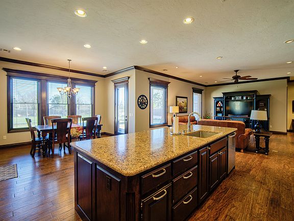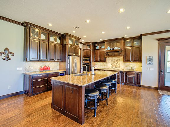 Welcome to this stunning +/-3410 square foot sanctuary nestled in the heart of the coveted Southfork Addition. Step into luxury as you enter the grand foyer, where the home's exquisite design and meticulous attention to detail are immediately evident. The crown jewel of this residence is the incredible, open kitchen boasting a spacious bar/buffet area. Whether you're hosting a gathering or preparing a family feast, this culinary haven is sure to impress. (Including an induction stovetop!) Luxurious finishes adorn every corner, creating an ambiance of sophistication and style. Effortlessly maintain comfort and sustainability with energy-efficient geothermal heating and air throughout the home, ensuring a cozy environment year-round while minimizing your carbon footprint. Retreat to the gorgeous primary suite, where indulgence awaits. Pamper yourself in the lavish primary bath featuring a glass walk-in shower and a luxurious soaking tub, providing the ultimate in relaxation and rejuvenation. Discover the added peace of mind knowing that one of the primary closets doubles as a safe room, offering security and protection for your loved ones. Wood floors grace the interiors, adding warmth and character, while an abundance of storage space ensures organizational bliss. With a total of 4 bedrooms and 3.5 baths, there's plenty of space for everyone to enjoy privacy and comfort. Additionally, an office provides a dedicated workspace, while a bonus room upstairs offers versatile living options. Outside, the beautifully landscaped yard beckons you to enjoy the serenity of nature from the covered front porch or unwind in privacy on the covered back patio. Embrace the tranquility of the enclosed sunroom, a serene space flooded with natural light, perfect for morning coffee or afternoon reading. For the hobbyist or craftsman, the full bricked detached garage/workshop provides ample space to bring your creative visions to life. Don't miss this opportunity to experience the epitome of luxurious living in a home where every detail has been thoughtfully curated for your comfort and enjoyment. Welcome home.