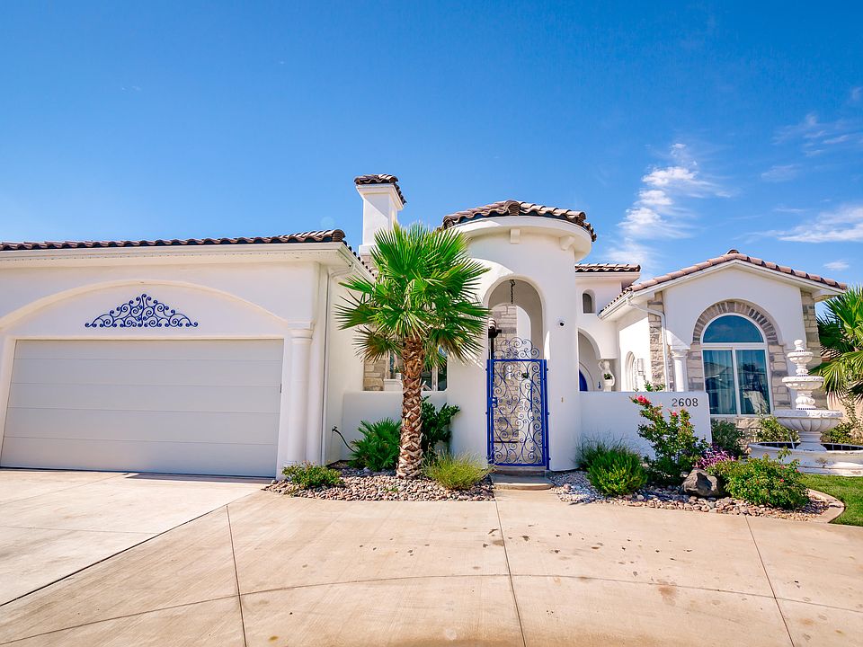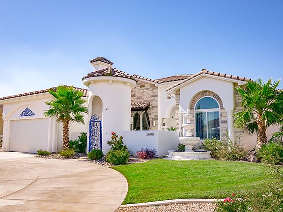 APPEALING NIGHTLY RENTAL APPROVED HOME! Your guests will love this Luxurious Mediterranean Home, the Unique Beauty will capture you the moment you step inside! Features 5 bedrooms 3 bathrooms and an office. Includes a casita with a private entrance. Fashionable designer kitchens on each level to treat your tastes. High end appliances with plenty of storage space and a walk in pantry. Master bedroom with en suite features separate tub/shower and a huge walk-closet, walk out to balcony and pool. Elegant Cantera Stone Columns, arched doorways, windows and ceilings! Marble like flooring throughout. Foyer with stunning floor and ceiling designs. Family/theater room includes wet bar. Downstairs bath with SAUNA. 30x18 HEATED POOL AND SPA, fire pit, and exterior barbeque with a huge covered deck