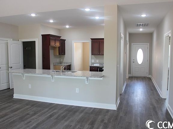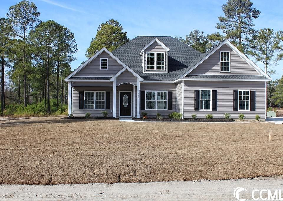 .99 acre oversized lot with trees and No HOA in Mt. Pillar Estates.The spacious Hemlock plan, entry foyer, relaxing front porch, rear screened porch, and a 22'x10' patio. Open floor plan, formal dining room with tray ceiling, the living room has a vaulted ceiling with a ceiling fan. Large open kitchen with abundant solid wood cabinets with crown molding and knobs. Granite countertops, breakfast bar, stainless steel appliances, microwave, smooth top range, dishwasher, and a walk-in pantry closet. Blinds thru-out the home. The primary suite has a tray ceiling with a ceiling fan and a large walk-in closet. The large bathroom has double bowl sinks in a raised height vanity, a walk-in marble shower with bench, raised toilet, linen closet, and a window to let light in. Wood-look waterproof luxury vinyl plank flooring throughout, carpet in the bedrooms. Spacious 2-car side entry garage with 2 additional windows, finished and painted garage with automatic door opener, pull down stairs to attic storage above. Upgraded interior trim includes 3 1/4" casings and 5 1/4" baseboards. Low E glass windows, energy efficient homes. Irrigation system, gutters, (front and back) sodded and landscaped yard. Choice of paint colors, white painted ceilings, recessed can lights in the kitchen, 2 coach lights at the garage, 2 flood lights, 30-year architectural shingles, window screens and shutters (per plan). Video is for illustrative purposes only and may be of a similar home built elsewhere. Enjoy the peace and quiet of small-town living, conveniently located and just minutes from downtown Loris, Nature Park, shopping, restaurants, and hospital. Desired Green Sea Floyds school district! Photos and video are for illustrative purposes only and may be of a similar home built elsewhere. Square footage is approximate and not guaranteed, buyer(s) are responsible for verification