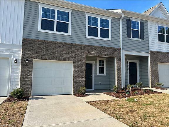 This 3-bedroom, 2.5-bath townhome features an open-concept floorplan with granite countertops and luxury vinyl plank flooring throughout the main living area. Enjoy 9-foot ceilings on the first floor and a brick front exterior with a charming front porch, perfect for relaxing outdoors or adding your favorite furniture. This home comes fully equipped with appliances—including washer, dryer, and refrigerator. Out back, there's a private patio for even more outdoor enjoyment. Upstairs, the laundry area is conveniently located, and the spacious primary suite offers a walk-in closet and a bathroom with a stand-up shower and quartz countertops. This home is move-in ready!