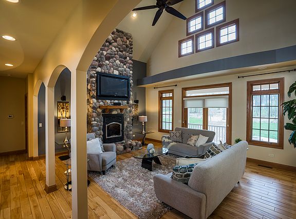 Stunning Custom Style home on a professionally landscaped 1 acre corner lot. Such an inviting home with lots of attention to detail. 3 zoned heat-a/c. 1,000 sf HEATED garage. Perfect for all of your entertaining needs. A Living Room with a beautiful 2-story High Efficiency wood burning fireplace. Hardwood flooring of Birch throughout the main level from the Living Room, Dining Room, Walk in Pantry, Laundry Room & Gourmet Kitchen! Top of the line Kenmore *Elite & *Jenn-Air 6-burner stove with griddle. Huge, Sub-Zero Refrigerator & Freezer. Lots of counter space. Under cabinet lighting. First floor Master Suite includes a Spa like bathroom with soaking tub, separate rainfall shower with 2 shower panels! Second Master Suite is stunning with all of its amenities including separate sitting room, gas fireplace, Vaulted ceilings with skylights and ceiling fans. Exterior includes a pretty front & back porch with outside speakers. Enjoy your brick paved patio with built in fire pit.