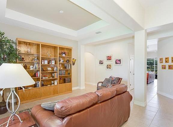 The largest home on the market in Sandoval. This has everything you are looking for! In ground pool and spa. 4 full bathrooms. Gorgeous lake view from your oversize screened in lanai and Southern Exposure. The kitchen features solid wood cabinets with soft close, corian counter tops, stainless steel appliances. Relax in your garden tub in the spacious master bathroom with oversize shower. The upstairs is a huge bonus room with its own full bath so it could technically be used like a 2nd master bedroom. Downstairs is a den/office with French doors. It would be perfect for someone who works from home. There is also a separate nook that is big enough to be used as another office or computer area. There is a 3 car garage for extra space or toys. All of this and the ability to live in the premiere gated community in Cape Coral. Sandoval features a resort style pool, tennis courts, exercise facility, playground, basketball courts, walking paths, dog parks, fishing lakes, clubhouse and much more. This is truly resort style living. Call today for you private showing!!