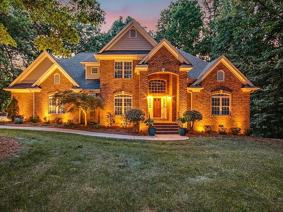 Nestled among mature hardwood trees on a quiet cul-de-sac in Whitehart, this custom brick home by Watkins Construction offers a spacious open floor plan with gorgeous custom features and ample storage. Enter from the oversized 3+ car garage into a chef's dream kitchen featuring stainless steel appliances, leathered marble countertops, live edge sycamore bar tops, a large walk-in pantry, and a convenient laundry room. The main floor boasts oak hardwood floors, chair rail, and crown molding. Enjoy the bright breakfast nook with a built-in storage bench or the formal dining room with a trey ceiling. The family room shines with high ceilings, a gas log fireplace, and a built-in entertainment center with reclaimed barn wood and a civil war era beam mantel. The main floor includes a half bath, a den that could be an office or nursery, a primary suite with vaulted ceilings, custom closets, a luxurious bath with a soaker tub, split vanities, and an oversized shower and a screened porch wired for audio with a wall mounted TV that conveys with the home. Upstairs, find two bedrooms, one with a walk-in closet, and a large bonus room that can serve as a fourth bedroom. The full buddy bath has dual vanities and a pocket door. The house is wired with CAT5, RJ-11, and coax cables, an alarm system, and central vac prep. Holiday lighting is easy with power outlets controlled by a single switch. The garage is a handyman's dream with 20A outlets, shelving, a workbench, dual tube shop lights, a utility sink, a 220V outlet, and an air compressor switch. The attic and crawlspace offer additional storage, and the 100-gallon propane tank conveys. Guests have plenty of parking, with extra spots for a boat or trailer. Whitehart neighborhood features walkable roads, ponds, a pool, and low HOA dues and taxes. Convenient access to shopping and nightlife in downtown Raleigh, NC State, Cary, Garner, Holly Springs, Apex, and the 540 Expressway. The professional landscape lighting makes this house even more stunning at night.