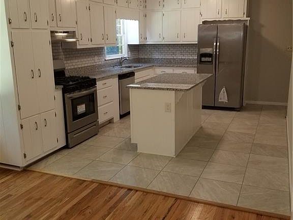 - Kitchen Features: Stone Counters, Kitchen Island, Cabinets White