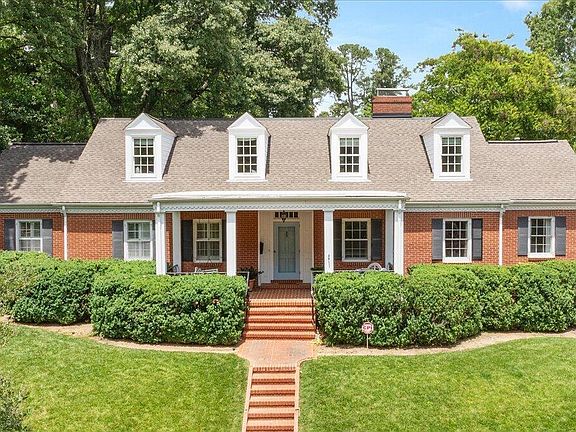 Charming brick one-and-a-half-story home on a well-landscaped, .40-acre lot overlooking one of Budleigh's most desirable streets - framed by large front and back covered porches, the light-filled open plan features an inviting entry with gracious living and dining rooms in the front, and an updated gourmet kitchen that overlooks the family room in the back - the spacious kitchen is a culinary dream and includes a cozy banquette, granite countertops with GE/Dacor/Wolf appliances along with an adjoining mud room - first floor primary suite includes sitting room, walk-in closet, and bath with double vanity and walk-in shower - the upstairs features two bedrooms with shared bath and awesome rec room with built-in corner cabinets - also includes a study, craft space and large walk-in attic - the period charm is further enhanced by the 8'3'' ceilings (down), hardwood floors, wainscoting and period moldings - French doors in the family room lead to the large covered back porch, which overlooks the gorgeous, private backyard with mature landscaping - the detached 2-car garage (23'x23') is nicely finished with 10' ceilings - the partially finished basement includes laundry with sink and half-bath plus flex space with exterior access - Generac Guardian 22KW generator - excellent schools - great family house - fun, caring neighbors!