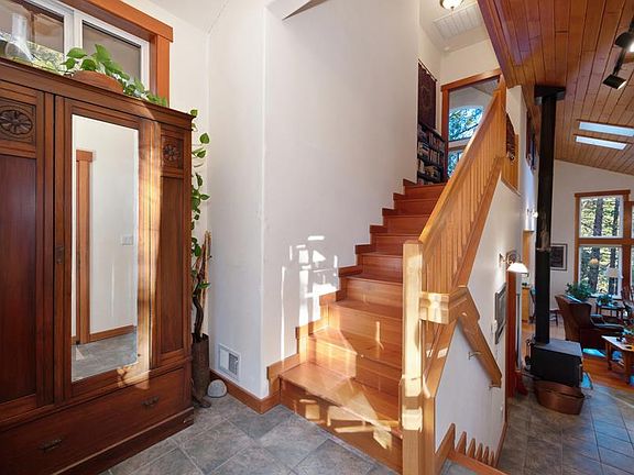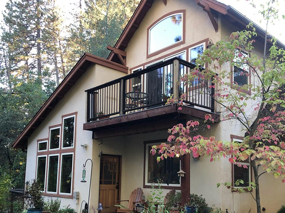 Escape to a custom-designed, multigenerational retreat commissioned in 2000 from renowned architect Michael Kent Murphy. Set in the middle of 6.25 GORGEOUS ACRES, just two miles from historic downtown Colfax, this home features stunning reclaimed Douglas fir floors, VAULTED CEILINGS and large energy-efficient windows that flood the spaces with natural light and incredible views. Discover delightful surprises throughout, including a secret passage through the master bedroom closet to a 264 square foot FLEX-ROOM to be used as your imagination sees fit, a custom shower floor crafted from rocks collected from the nearby Bear River, and a laundry chute that goes from the upstairs bathroom to the downstairs laundry room. The entire home can be easily warmed by the use of one wood stove; and the property comes with enough chopped, split and stacked wood to warm you and your family for years to come. The nearby 550 sq. ft. GUEST CABIN, tucked just out of view from the main home, with its own private driveway and roomy 2-car garage, still boasts of original knotty pine interiors and floors made from reclaimed wood from a local blacksmith shop. It also has its own electric meter, propane tank and back up generator. Don't be fooled by the listed square footage, as the property LIVES SO MUCH LARGER with the flex room and the cabin. In addition there are 4 bunkhouse-like rooms attached to the cabin's garage that provide versatility for additional guests, storage or creative spaces. Private and spacious, close to many historic sites and year around recreation, this much loved property can now be yours!