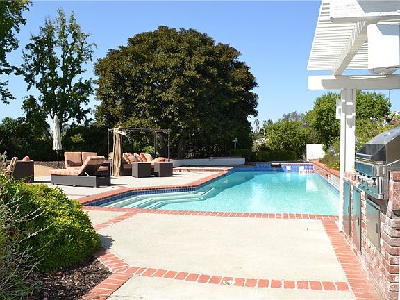 Welcome to this ample space with refined luxury on the most highly desirable street in the prestigious Nellie Gail Ranch. With a nearly 18,000 sq ft lot, the sprawling homesite is replete with pool, spa, built in BBQ, brickwork and mature trees. 3 car garage with ample guest parking. The plan 124 is THE MODEL to own. Generous sized rooms abound, with over 4000 sq ft of living space, 5 bedrooms, 4 baths, two bedrooms on the main floor, and a stunning master retreat with fireplace. Main floor living area is open to kitchen, wet bar, and large family room. Separate formal dining and living area with stunning natural light opens to park like entertainers yard with pool, spa, built in BBQ, numerous seating areas, enough room for your largest parties, come enjoy the outdoor living California lifestyle.
