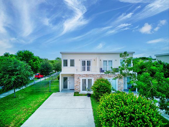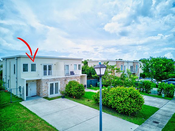 Beautiful builder model townhouse! No HOA, no CDD. This modern architecture townhouse was built in 2018 and offers 4 BR and 3.5 BA. 2 master BR and one of them located on the 1st floor with private entrance. Impact windows! Elegant 24 x 24 white tiles throughout the whole property. Open kitchen with solid 36'' wood cabinets, granite countertops and elegant backsplash open to the family room and dining room. Elegant wood staircase with stainless steel rails and very high ceiling will take you to the 2nd floor where you will find another master BR, 2 additional BR and a full BA. Corner unit offers a very large, fully fenced backyard perfect for your pets and entertaining. Shed will remain in property. Very large driveway will easily accomodate 4 cars. You will fall in love with this house!