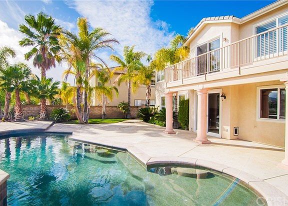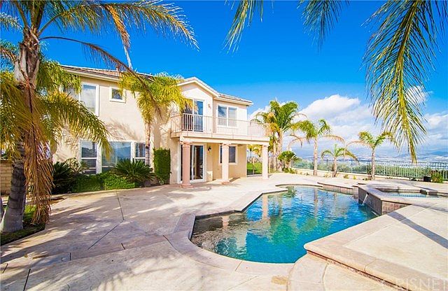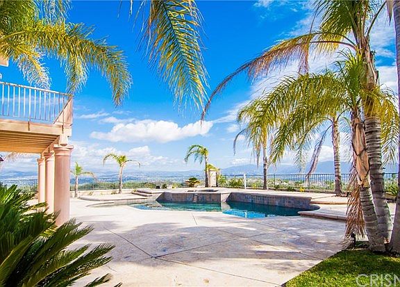 THE top-of-the-world huge usable lot view home in Stevenson Ranch! This private, gated pool & view home has everything the discriminating buyer asks for and rarely finds. Tons of grassy area in addition to the pool. End of the cul-de-sac with total privacy and the highest view point in Santa Clarita. Nicely upgraded with remodeled kitchen, iron staircase, crown & baseboards throughout, shutters, wood floors, built-ins, closets with organizers, custom paint, granite in baths, 3 car garage with cabinets - it has it all! This popular floor plan uses the space in an open & functional way, full bed with attached private bath down, plus another 1/2 bath for guests. 4 beds, 3 baths + loft up. Great deck off master to enjoy the sensational view.