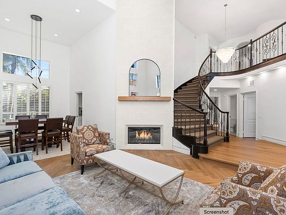 Available from Sept 1, 2024 thru June 30, 2025. Step into luxury with this beautifully designed home that offers all the bells and whistles. Located in a prime cul-de-sac, this residence is a perfect blend of elegance and functionality. From the moment you enter, you'll be impressed by the gourmet kitchen featuring top-of-the-line appliances and sophisticated finishes. The custom wrought iron staircase adds a touch of grandeur, leading you to an open and sought-after floorplan that is ideal for both relaxation and entertaining. The luxury master bath is a true retreat, meticulously remodeled to provide a spa-like experience. The home sits on a large view lot and includes a private pool and spa, a basketball court area, and stunning canyon and nature views. The expansive backyard is a highlight, featuring a built-in BBQ, sports court, and beautifully landscaped areas with palm trees, grassy spaces, and plenty of room for entertaining guests. Inside, the home offers four bedrooms plus an office and bonus room. The downstairs bedroom has a separate entrance and its own full bath, providing convenience and privacy. Upstairs, you'll find three spacious bedrooms, a bonus loft area, and the impressive master suite, which includes a viewing deck, two large walk-in closets, and a highly upgraded bath. Additional features include plantation shutters, designer touches throughout, and a built-in entertainment center. The property also offers a four-car garage with additional parking for a boat or trailer. This home is a rare find and a must-see.