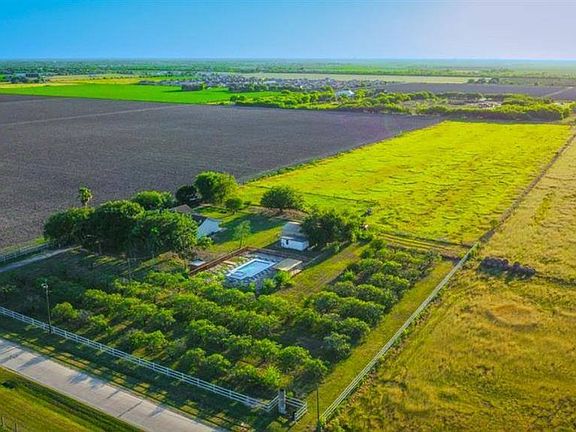 Dont Miss this Great Opportunity!! SELLER WILL COVER ALL CLOSING COST!! Relaxing country living in this gorgeous farm-style home sitting on +10 acres in La Feria. A beautifully crafted stone and mason privacy fence welcome you with an oak tree lined driveway. This 4 bedroom 2 bath home boasts a wrap around porch with beautiful views of the vast acreage and sparkling pool. Open concept layout in spacious living and dining areas with tile throughout. Large kitchen has plenty of cabinet space with a dry bar overlooking the dining complete with new stainless steel appliances for the house chef. Comfortable carpet flooring in bedrooms with granite counters in revamped sizable bathrooms. Garage was converted into a second living with wood ceramic tile flooring and french doors with a gorgeous view of the land with more than 50 fruit trees to enjoy your own crop of citrus! pristine ground Pool has heating and beautiful color lighting systems. Separate storage area with stable/barn & coop.