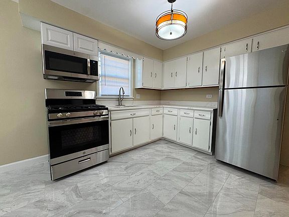 This beautifully remodeled brick home near Highland Schools is freshly updated and move-in ready. It features refinished hardwood floors, fresh paint in modern colors, new blinds, and updated lighting with dimmer controls. All three bedrooms have remote-control ceiling fans, and the kitchen and dining area shine with marble tile floors, quartz countertops, and new stainless steel appliances. Bathrooms were updated within the last six years. The full 1,173 sq. ft. basement is spotless with fresh paint, a washer and dryer, and new windows, along with a newer furnace, central air, and hot water heater. A large backyard and 2.5-car garage in excellent condition complete this home, offering comfort, convenience, and style in a great location.