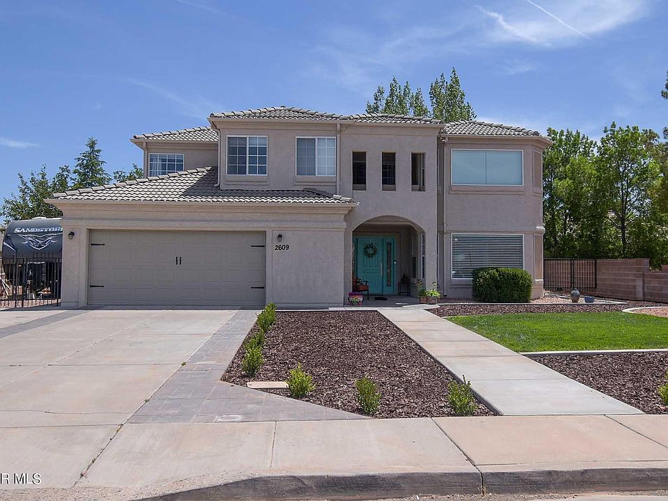 Hurricane Utah gateway to Zion National Park. Amazing Views of Red Rock Vistas & Pine Valley Mountains! Updated 5 Bedroom Home. Updated Remodeled master & hall bathrooms, interior laundry w/quartz counter, cabinets & sink, Updated kitchen w/granite, stainless steel appliances, garden windows & pantry w/secret closet, 2 fireplaces, French doors, bed & bath down, ceiling fans throughout, recently painted exterior & interior. Covered patio, private balcony, gated RV full hookups -electric, water & sewer, 2 1/2 car garage, newer insulated roll up door, extra-wide driveway parking. Block wall fenced & wrought iron gated backyard. Downstairs bedroom currently used as a nail salon/studio w/separate entrance. Great location at the end of the street!. Sand Hollow Lake and Quail Creek State Parks just minutes away.
