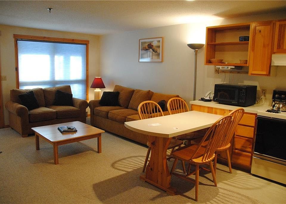 This one bedroom condo has a big living area, with plenty of space for company! Easily sleep an additional 2 people with a sofa bed. Full bath and laundry! Very private spot, on the shuttle route, or walk to the lift at the end of Trout Brook Lane! Right next to Brackett Brook, this condo also has a residents and guests only in-door pool for year round use and tennis courts and a pond in the summer!