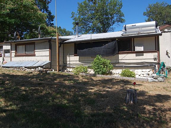 Wonderful old home... looks like something out of a 1940's movie with a fabulous huge kitchen with the big family table in the middle of the room. Looks like an original propane cooktop, double wall oven, tons of storage all over the home, big master bedroom with 1/2 bath and walk-in closet. Family room off the kitchen features an old dry bar. The 2 bedrooms off the family room share closet space in the family room. Full bath on the back side of the home also houses the washer and dryer. Several storage buildings and sheds. Newer septic system installed in 2001. Great property surrounded by old growth trees, some fruit trees, grape vines, garden area, plus lots of room for parking. CASH ONLY....