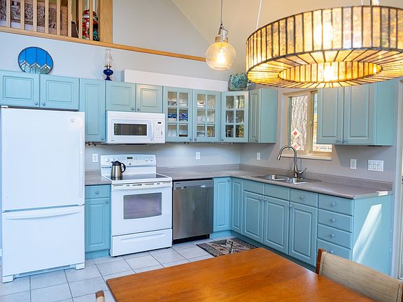 Impressive from the Moment You Step Inside! As soon as you walk through the door, this home takes your breath away. Vaulted ceilings and stunning floor-to-ceiling windows fill the open living space with natural light and offer a sense of calm. The craftsmanship offers rich wood beams and railings that add warmth and character. The spacious lofted primary suite is a true retreat with a cozy seating area, walk-in closet and ensuite. 2 bedrooms and a full bath are located on the main level. The easy-care corner lot offers privacy while keeping maintenance to a minimum. Basement with concrete flooring is ideal for workshop, studio and storage. Located just a short stroll from Shingle Bay, this is your chance to enjoy peaceful island living in a home that’s as welcoming as it is impressive.