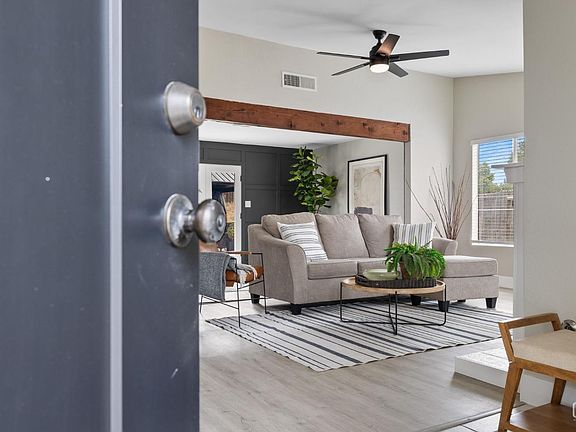 You won't believe it! This home has been totally refurbished and updated. From the moment you walk in, you will feel the difference. The living room has a fireplace and plank flooring that give you the area for TV viewing or just relaxing, while the large eating area has tile and the French doors to the enormous back yard. And did you say relax? The beautiful patio cover is included. The kitchen is a wonderful place to cook with the glazed wood counters, updated range and lighting and plenty of storage. The hall bath sports a new counter and sink along with the new toilet and shower over tub. Please notice the organizers in the bedroom closet spaces and the fan/light fixtures are a perfect blend of color appeal and usefulness. The Primary bedroom is good sized and the bath has also been afforded the upgrades. And don't forget to notice the epoxy flooring in the garage that helps keep everything neat and clean. This is a delightful home in an area where the kids can walk to school.