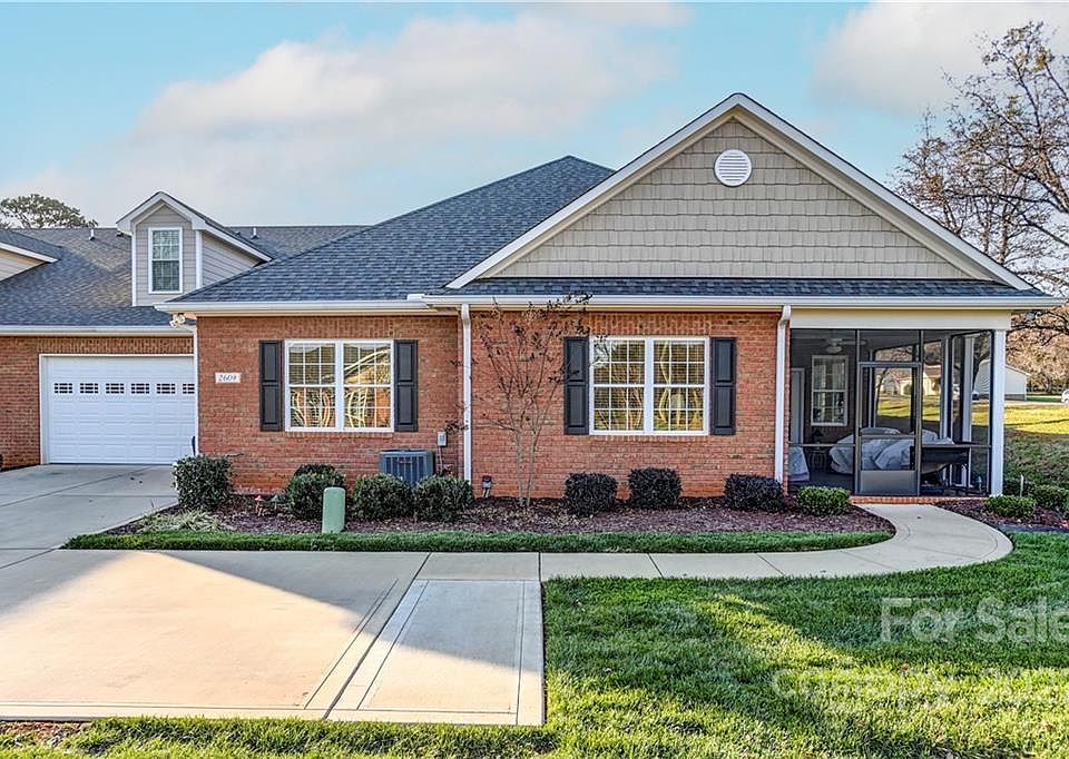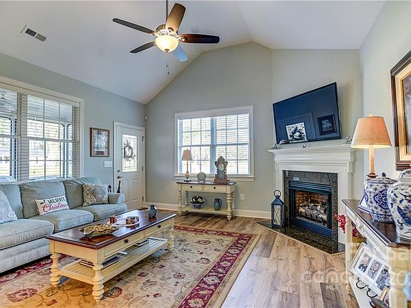 Live like you are on vacation in this amazing 55+ community. You enter into the tiled, screened front porch with a ceiling fan to keep you cool. The big open living area boasts a cathedral ceiling, fireplace, dining area with tray ceiling, & lots of natural light! To the right the sunroom has a tray ceiling, a ceiling fan, and lots of windows. The kitchen has a breakfast bar, white cabinets w/pullout drawers on lowers, under cabinet lights, granite counters, textured backsplash, electric cooktop, stainless wall oven & microwave, ceiling fan, & pantry. The primary suite has plenty of space for large furniture, double tray ceiling w/ceiling fan, walk in closet, double sinks with plenty of storage under, zero entry walk in shower tiled to the ceiling. Second floor offers a getaway for company with a full bath & closet, walk in storage w/attic fan & humidifier! Other home features include EVP flooring that has been carried into the BR's/sunroom on the main, gas grill hookup & brick front.