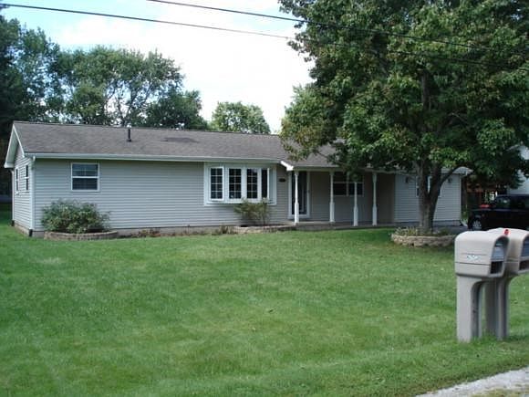 Nice 3 bedroom ranch with a 2 level deck for a 24' above ground pool with lights. Large patio with firepit, 1/2 acre lot with 2 storage sheds 14'x14' and 10'x20'. Replacement windows 2010. Many updates including seamless gutters. Quiet area in Mt. Zion school district.