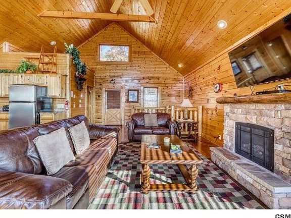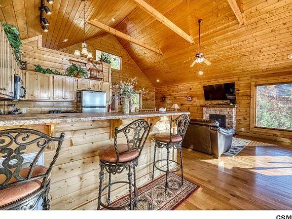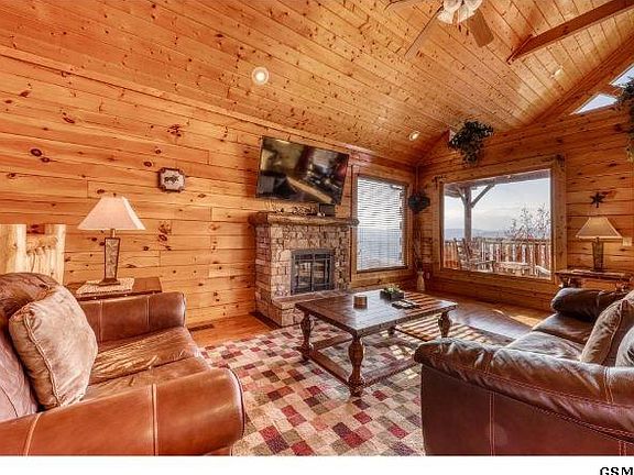 Legacy Mountain Resort is a premier overnight cabin rental community with sweeping smoky mountain vistas, located in Sevierville, TN. If you're looking for stunning panoramic mountain views, look no further. Pleasant View Ridge offers an open floor plan with beautiful hardwood floors and T & G throughout. Stainless appliances, log furniture furnishings and big open windows to enjoy the luxurious mountain views. Main floor features living room with stone fireplace, fully furnished kitchen and eating space. Lower level highlights recreational space for fun with family and friends. Master suite with Jacuzzi jetted tub and deck space to take in the gorgeous star views from the hot tub. Turn key, income producing property, ready to rent.