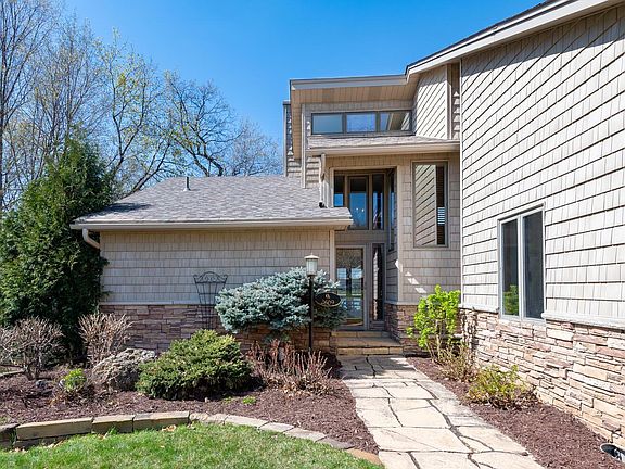 Outstanding one owner home rests on a quiet culdesac with 90 feet of lakeshore on peaceful Langdon Lake. Enjoy panoramic views of the lake with Eagles perched in a tree and a variety of water foul and wildlife! The moment you enter you take in the incredible lake view through a wall of Marvin windows in the vaulted great room! The dining room overlooks the lake and steps out to the large, newer maintenance free deck. The kitchen features white enameled cabinetry, granite tile counter tops and stainless appliances. A laundry mudroom leads out to the garage with storage below. Main floor primary suite with wood burning fireplace, whirlpool bath and a glass enclosed sun room steps out to the deck! The loft holds two large bedrooms, updated full bath and huge walk in closet. The walkout level offers a family room with gas fireplace, large bedroom, 3/4 bath, exercise room and workshop space. Enjoy an evening fire on the patio at lakeside! It is a short walk to Surfside beach and the trail.