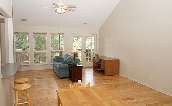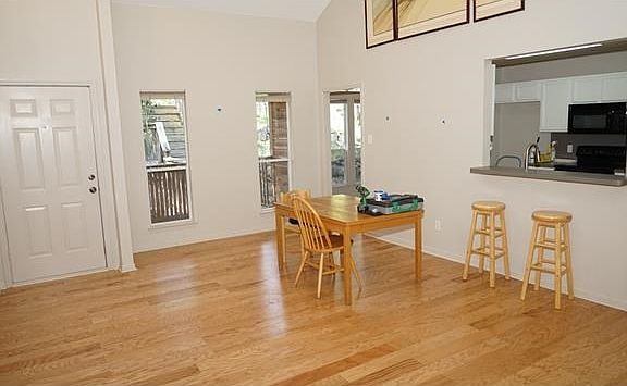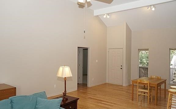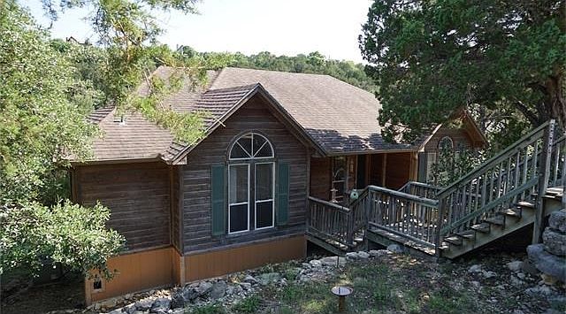 Enjoy wonderful evenings from your hot tub on your covered back deck overlooking the beautiful hill country. Big fenced back yard & lots of mature trees. Adjacent lot conveys & gives you added privacy. It has a driveway & you could add a garage or another home. Open spacious feeling inside w/ high ceilings & lots of windows. Master bedroom & secondary bedrooms on opposites sides. Recent wood floors, tile and carpet, bathroom countertops & shower tiles, paint. Large built out "basement" storage area.