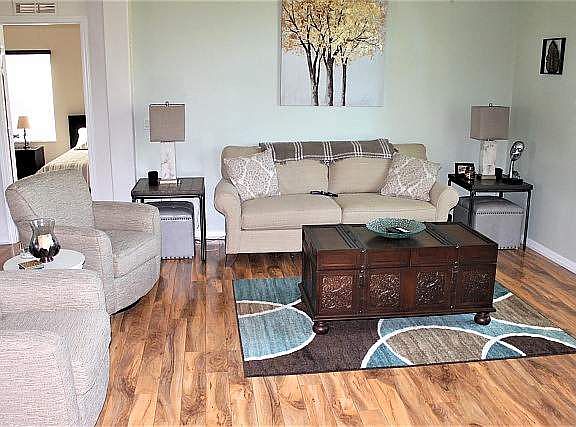 1316 SQ FT home, 2 BR 2 BA, Split floor plan, fully furnished, Laminate floors throughout, beautifully decorated, large master suite, eat in kitchen, loads of cabinet space, formal dining room, freshly painted driveway, double covered driveway, beautifully landscaped yard, priced right and ready to move in. New AC in 2018 and Newer Roof