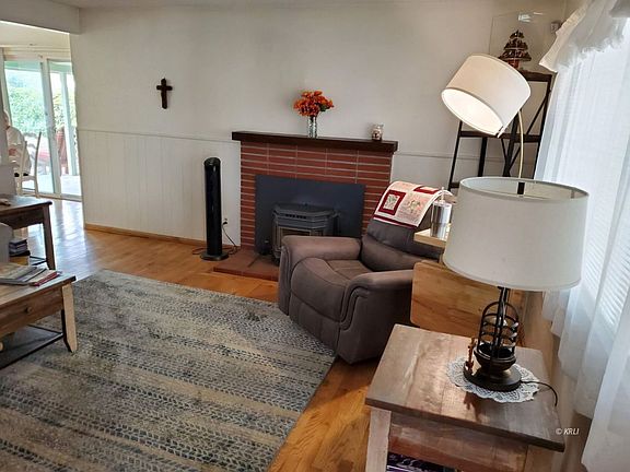 Pride of ownership shows at this home with 2 bedrooms & 1 bath. Shiny hardwood floors through out most of the home, beautiful built in hutch in the dining room and pellet stove insert in the living room. Kitchen has large counter space and lots cabinets, master bedroom has mirrored closet doors & other bedroom is currently being used as an office / craft room. Dining room has a slider out to the patio & the well manicured back yard with lawn & mature shrubs & bushes. Attached garage with auto door & room for 2 cars on the driveway. Centrally located close to shopping, public transportation & not far from lake access. Great property for full time residence or vacation home.This is an all electric home fully powered by Solar.